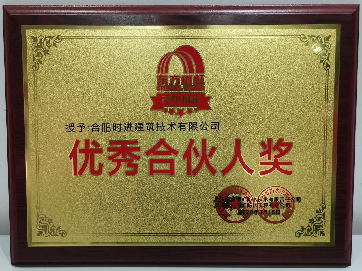 2020年2月24日,在东方雨虹工建华东合伙人网络大会上,合肥时进建筑技术有限公司荣获东方雨虹集团“2019年度优秀合伙人奖”。