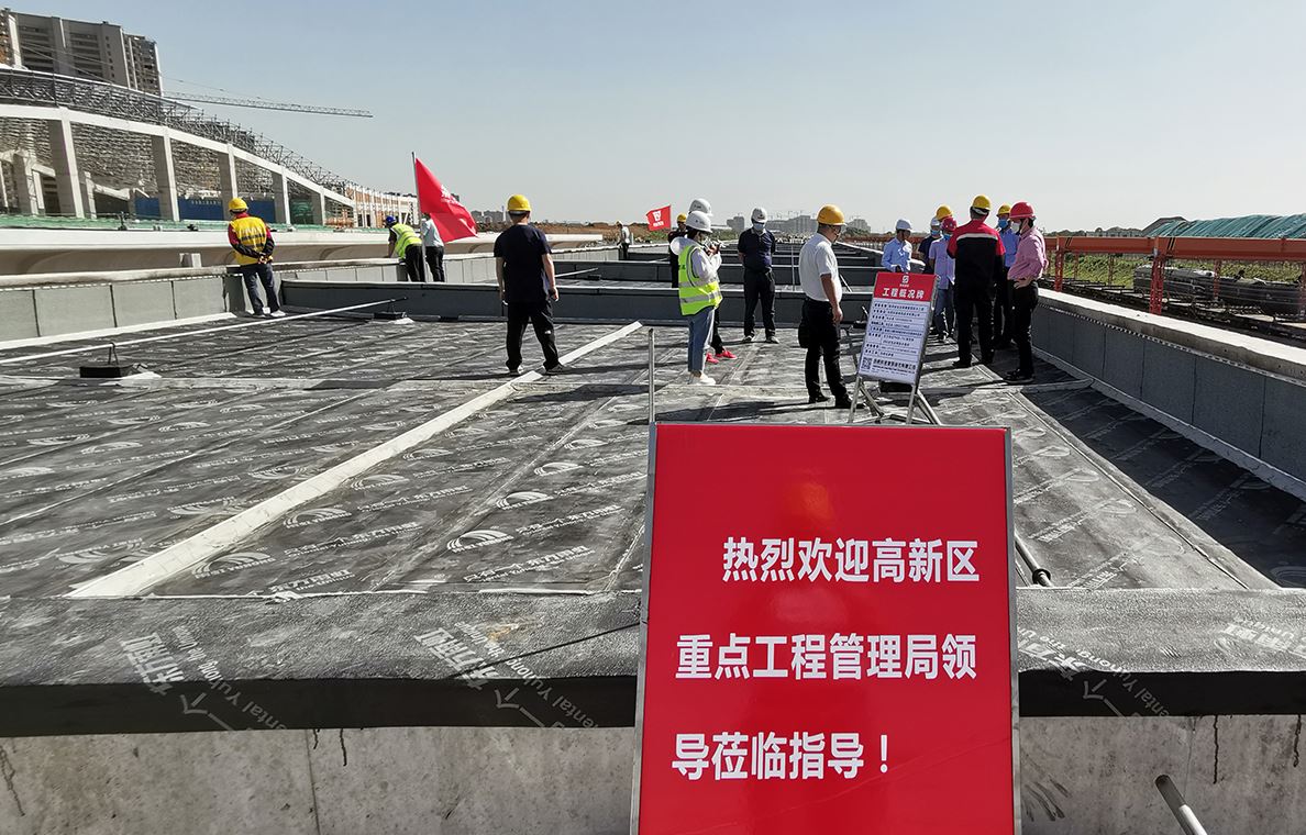 2020年5月18日下午,由合肥市高新区重点工程管理中心组织、高新区各参建单位,施工单位中建一局和中建二局、监理单位安徽省监理公司和检测单位负责人一行20余人,来到公司肥西站项目进行屋面防水工程技术现场观摩;肥西站总包单位中铁四局建筑公司项目经理苏旸先生全程陪同;安徽省建筑业协会建筑防水专业委员会会长廖绍锋先生,副会长丁昌杰先生也应邀参加;公司总经理刘永泉全程讲解。