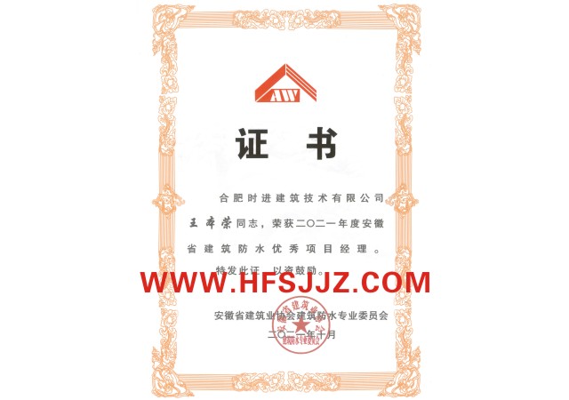 2021年度安徽省优秀防水项目经理
