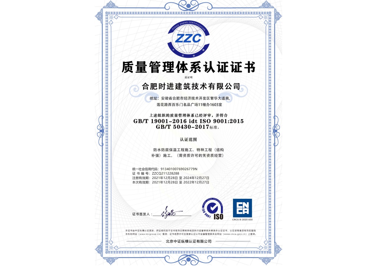 质量管理体系认证证书