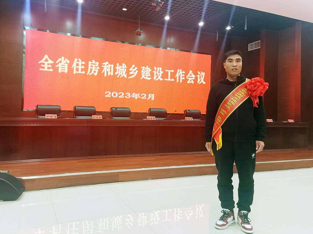 在省住建厅三楼主会场 ,合肥时进建筑技术有限公司防水班组长凡金良作为优秀代表,代表2022年全省住房城乡建设系统“徽匠”竞赛的参赛选手在大会接受省厅领导颁奖。
