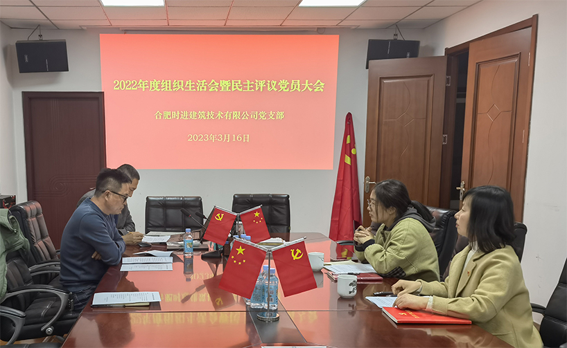 3月16日下午,中共合肥时进建筑技术有限公司支部委员会召开2022年度组织生活会暨民主评议会。时进党支部书记刘忠良主持,公司全体党员参加此次会议,丹霞党总支副书记孙静同志出席会议并作指导。