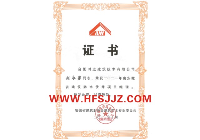 2021年度安徽省优秀防水项目经理